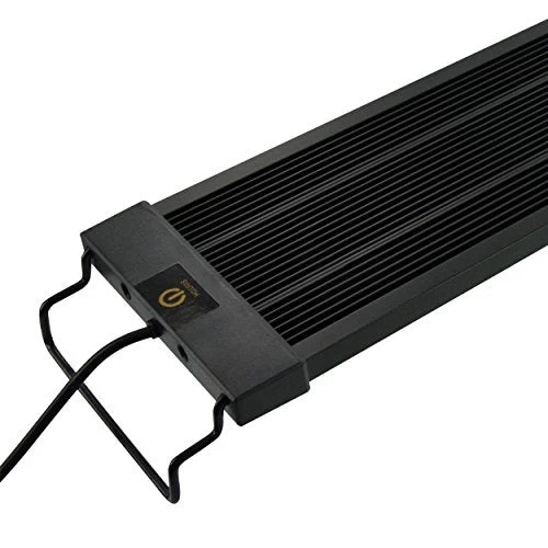 Aquarium Masters’ HD LED Lighting System with Dimmer is a top of the line high intensity LED strip that runs cooler and lasts longer than other conventional lighting systems. Custom made solid-state LEDs create a beautiful shimmering light that produces 10,000k daylight, 460nm lunar, and 630 red diodes, projecting beautiful color renditions perfect for both freshwater and saltwater aquariums. Cycling between the system’s three lighting modes is exceptionally simple with the touch-capacitive power control located at the top of the strip. Touch and hold the capacitive power control to dim or brighten the diodes, making acclimating your fish to the new lighting system nearly effortless. Aluminum housing gives this lighting system a sleek and low profile feel, with matte black coating to protect the surface from unsightly contaminates. An aluminum heatsink integrated within passively dissipates heat generated by the diodes, allowing the unit to function at optimal performance. An integrated mounting system makes securing this light strip to your aquarium simple and safe, and the efficient, low voltage power source runs silent and cool.