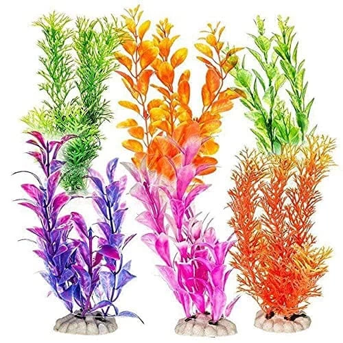 Aquatop Weighted Pack Plastic Aquarium Plant – Assorted – 7 In – 12 Pack