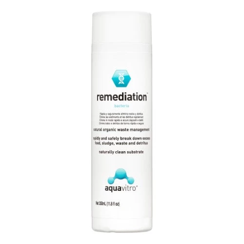 Aquavitro remediation is a natural organic waste management product. remediation rapidly and safely breaks down excess food, sludge, and waste. It naturally cleans the substrate while bacterial colonies trap particulates and increase water clarity. Great for use in freshwater and saltwater aquariums.