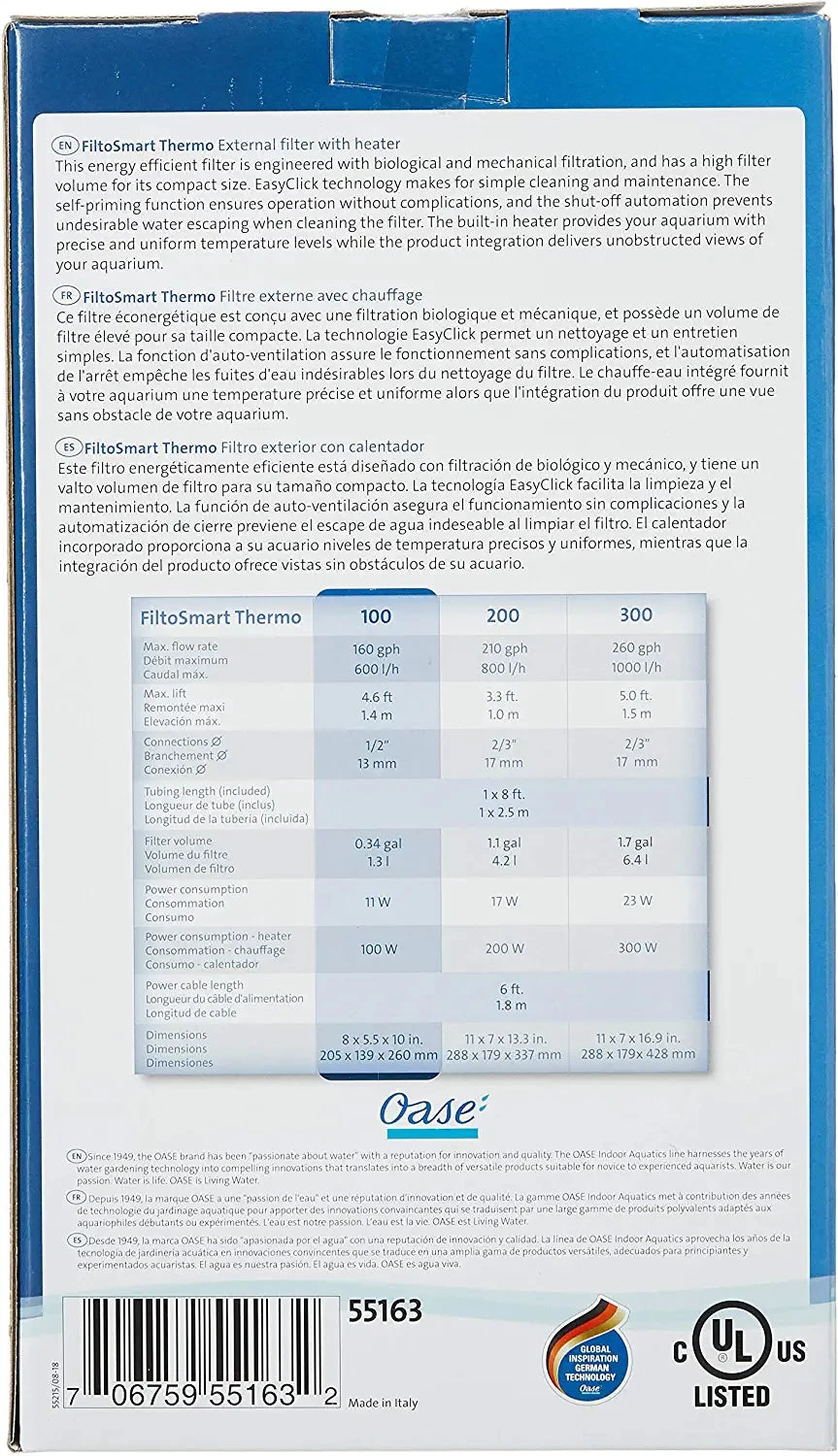 Oase Filtosmart Thermo 100 External Aquarium Filter – 30 Gal