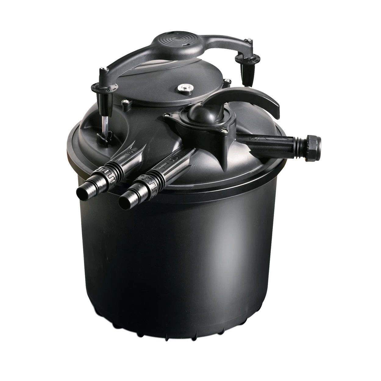 The Green Reset 25 External Pressure Filter is a pressurized pond filter boasting three stage filtration. The mechanical filtration comes from durable filter sponges, the biological filtration uses bio balls and uv lamps provide exceptional algae sterilization to eliminate green water for a cleaner, prettier and more balanced aquatic environment. Due to the high level of pressure offered by the filter, the unit is ideal for providing higher elevated watercourses, such as streams, ponds and water features with the necessary amount of water for continued and consistent flow. Consistent water flow contributes greatly to the overall health of any water body, and helps to reduce the build up of harmful bacteria and algae. For improved ease of use, the Sicce Green Reset 25 External Pressure Filter features a unique patented easy cleaning system, that delivers a deep, thorough clean by squeezing the sponges instead of just backwashing them. Can be installed above ground or below ground depending on the practical and aesthetic needs of the unit. Ideal for sensitive koi ponds up to 2200 gallons and energy efficient at only 10 watts.