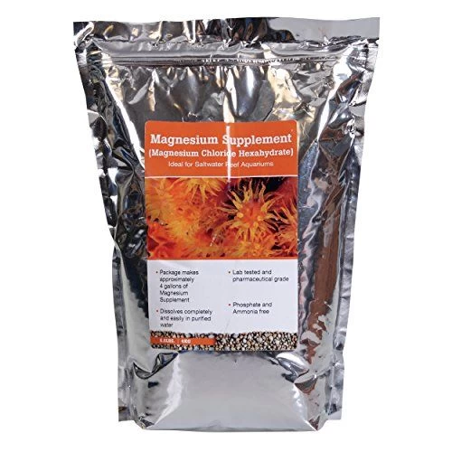 Laboratory tested and pharmaceutical-grade Magnesium Chloride Hexahydrate from SR Enterprises is ideal for raising magnesium in saltwater reef aquariums. This ammonia and phosphate free supplement dissolves easily and completely in purified water. This 8.8 lb package makes approximately 4 gallon of high quality supplement.